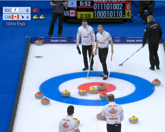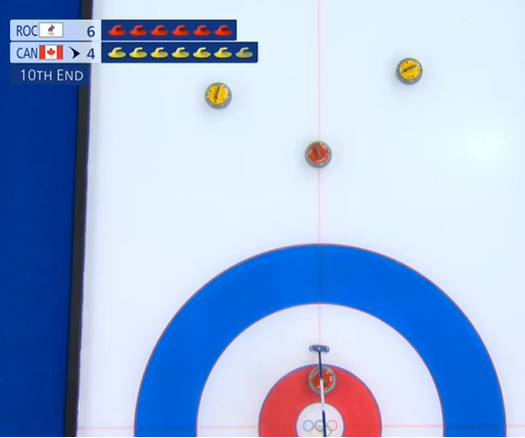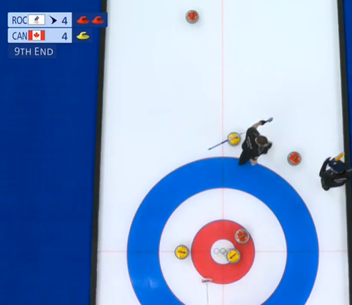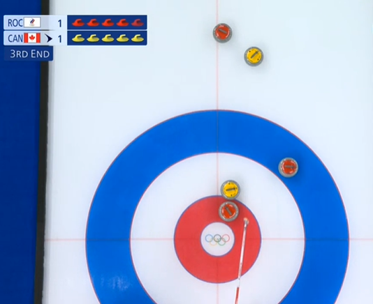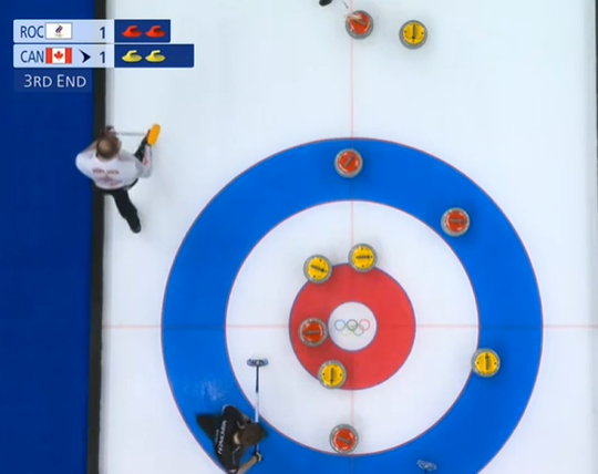 Довольно опасная ситуация для России сложилась. Остались по два броска скипов в третьем энде.