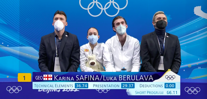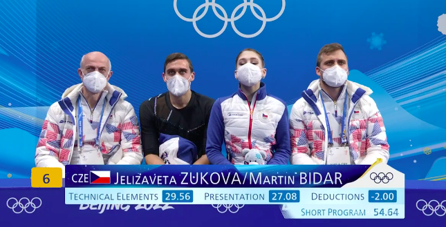 Жук и Бидар получают за короткую программу 54,64 балла. Очень низко из-за ошибок, конечно.