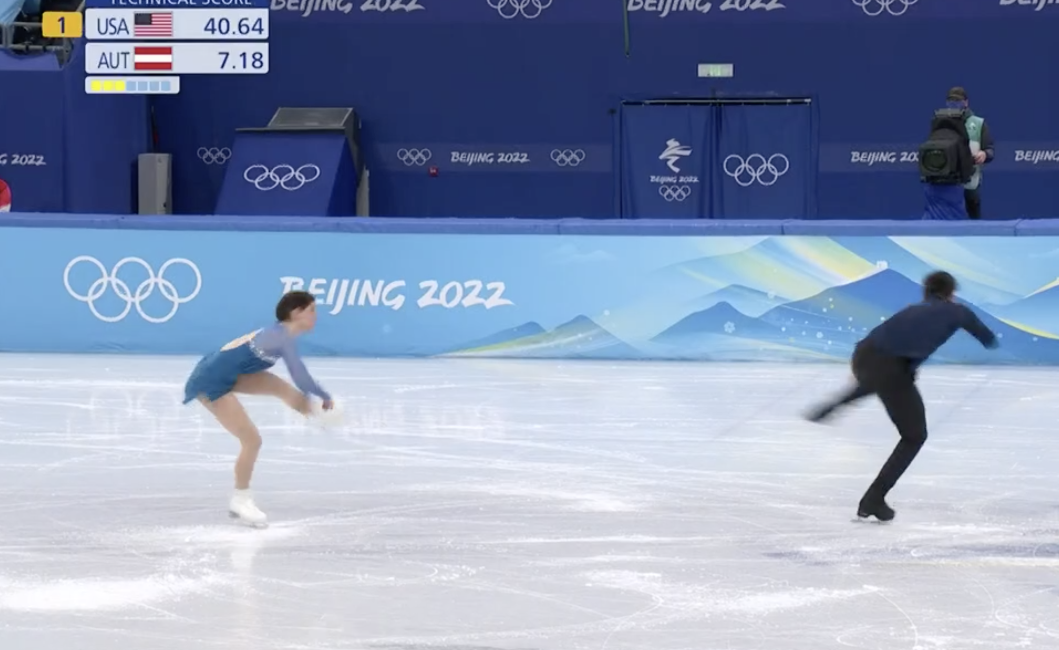 Тройной подкрут и параллельный тройной риттбергер американцы исполнили хорошо. Разве что на прыжке может быть недокрут — судьи еще проверят.