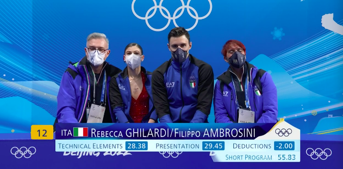 Гиларди и Абмросини получают за короткую программу 55,83 балла. Они кое-как попадают в произвольную программу.