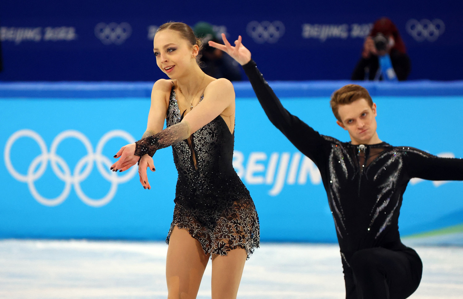 Следующими выступают Шен Пен и Янь Цзинь из Китая. Они катаются под «Лунную сонату» Бетховета и No One (Alicia Keys).