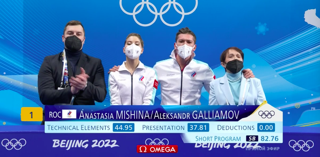 Мишина и Галлямов получают за короткую программу 82,76 балла. Это промежуточное первое место!