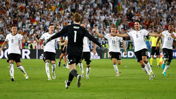 Вторым финалистом Евро-2016 стала сборная Франции, обыгравшая Германию со счетом 2:0. После матча французы уже предвкушали встречу с Португалией за титул чемпиона Европы, а немцы сокрушались, называя результат полуфинала несправедливым.