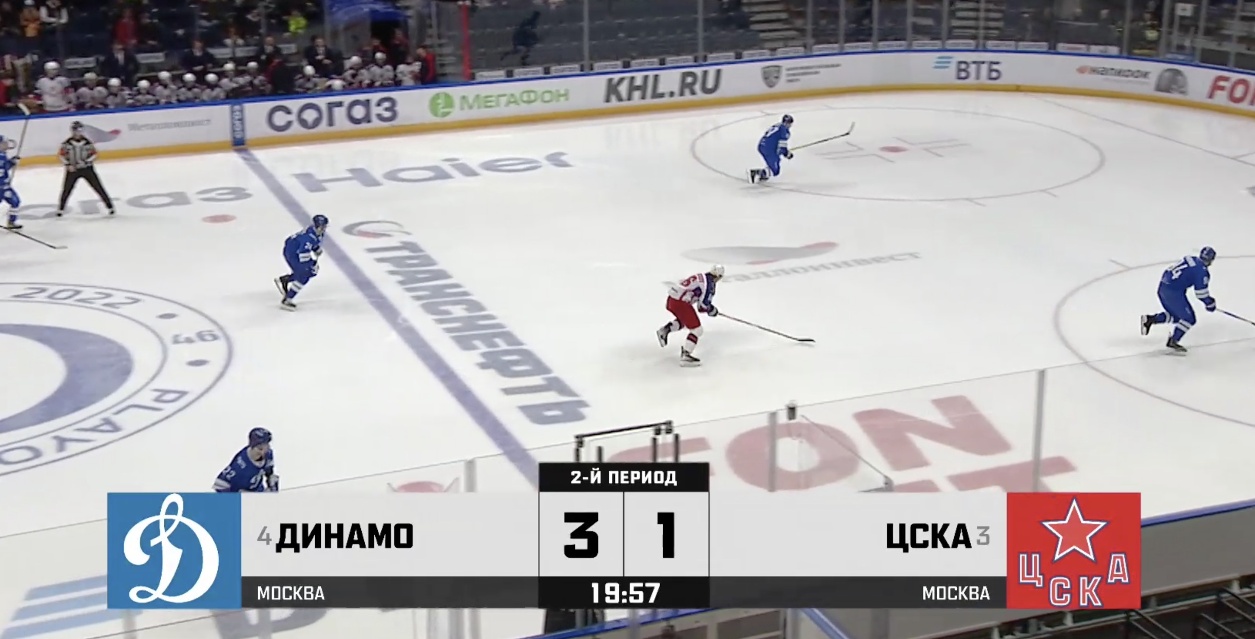 Конец первого периода! Невероятный по энергетике первый период выдали команды на «ВТБ Арене» — хозяева отправляются в раздевалку, имея преимущество в две шайбы!