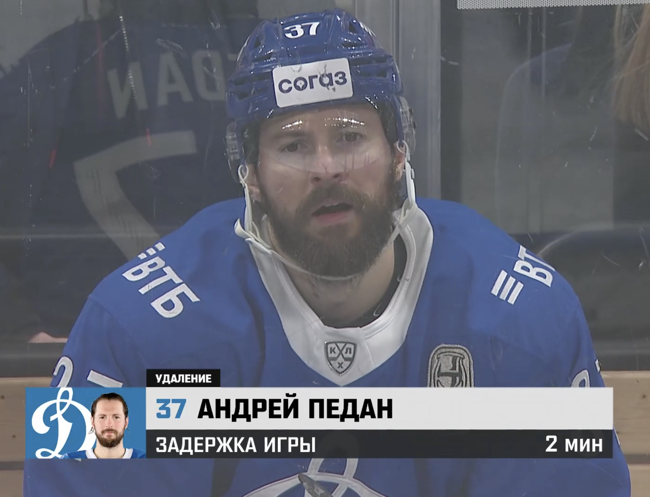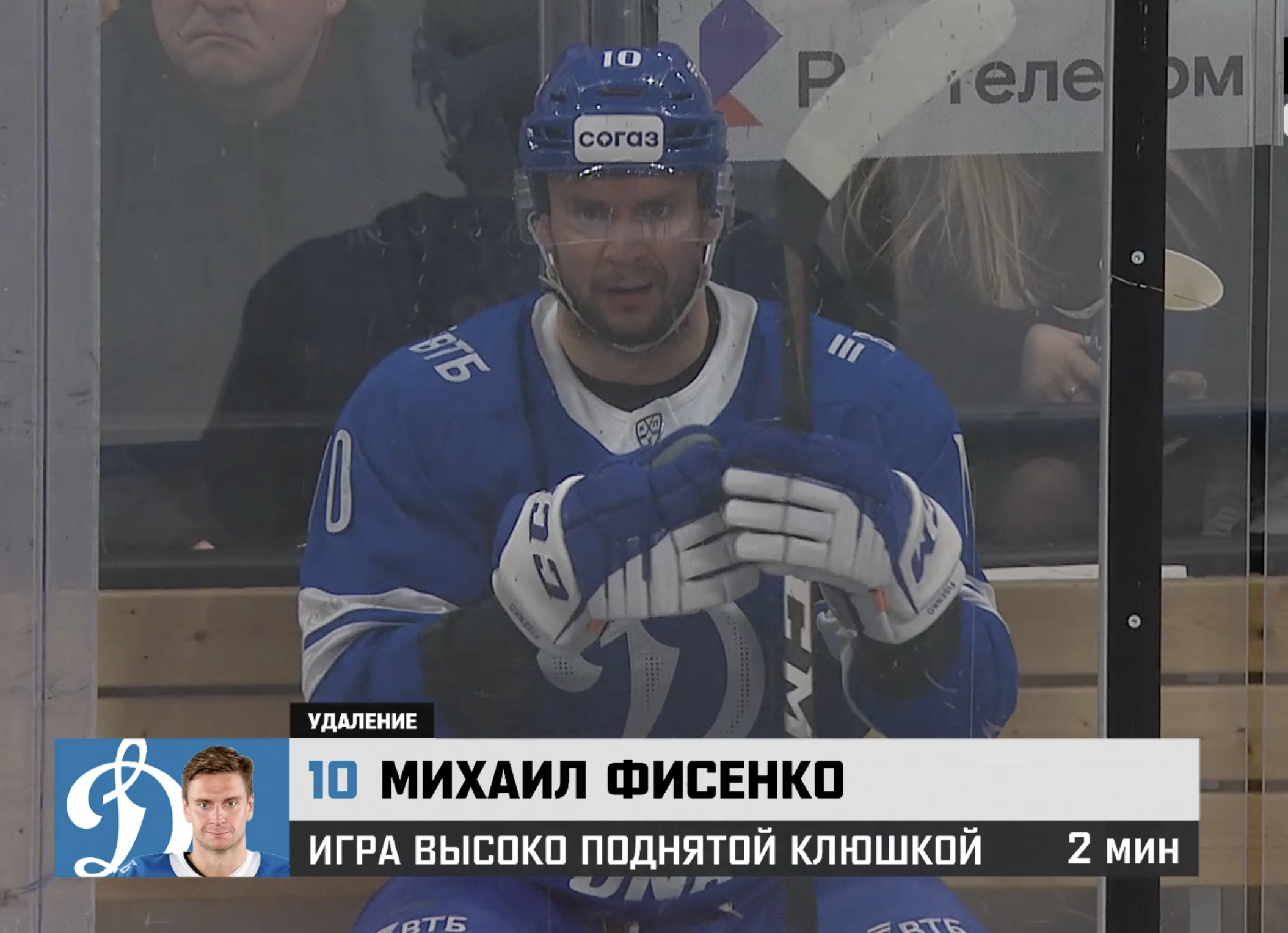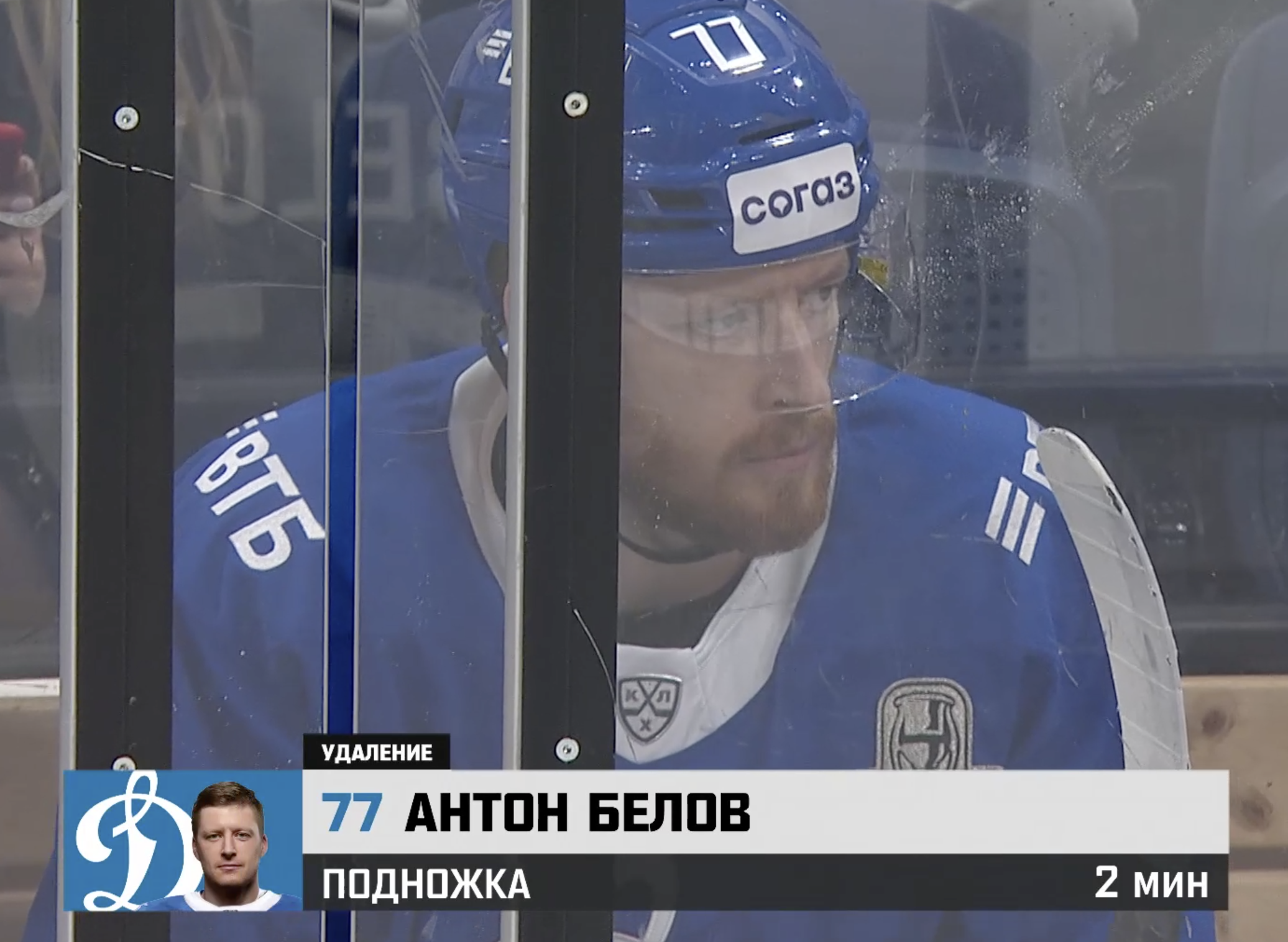 Артем Сергеев одиноко тоскует на скамейке штрафников. Две минуты большинства получает «Динамо».