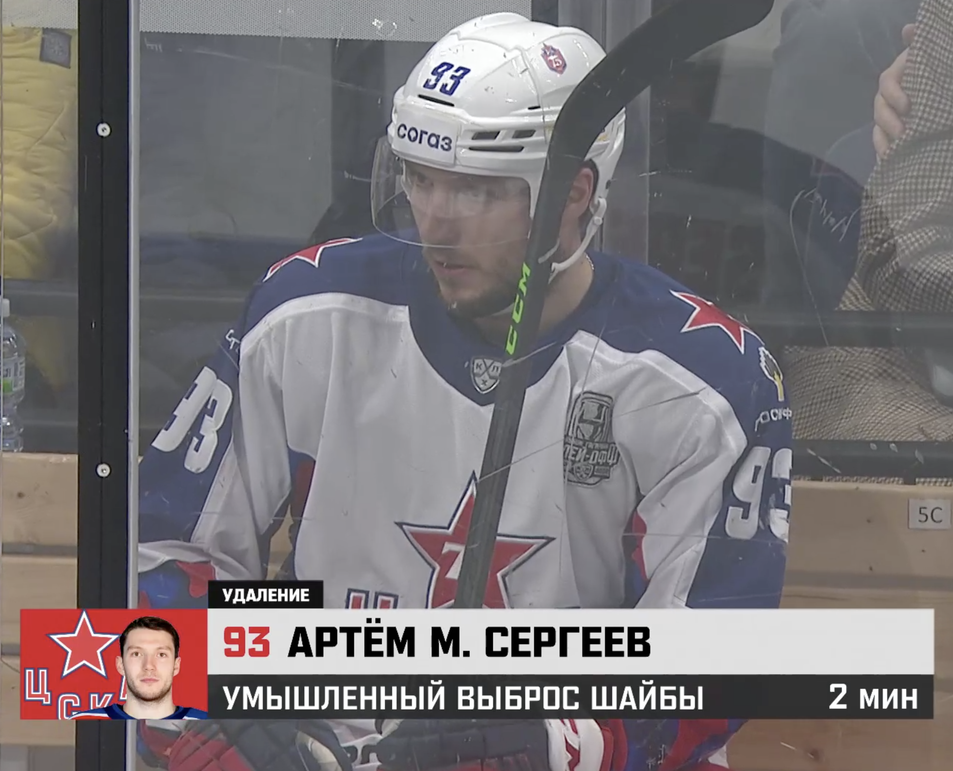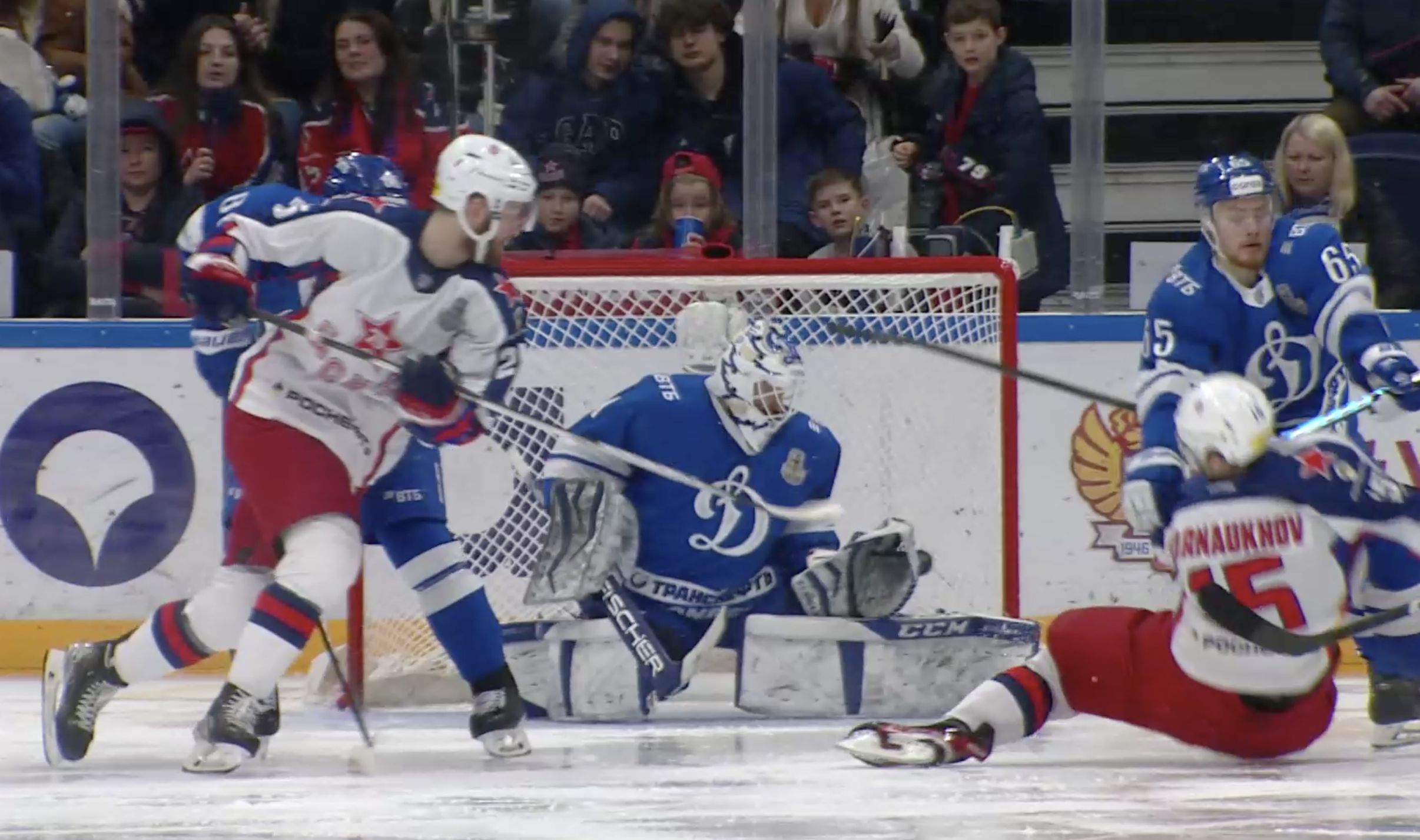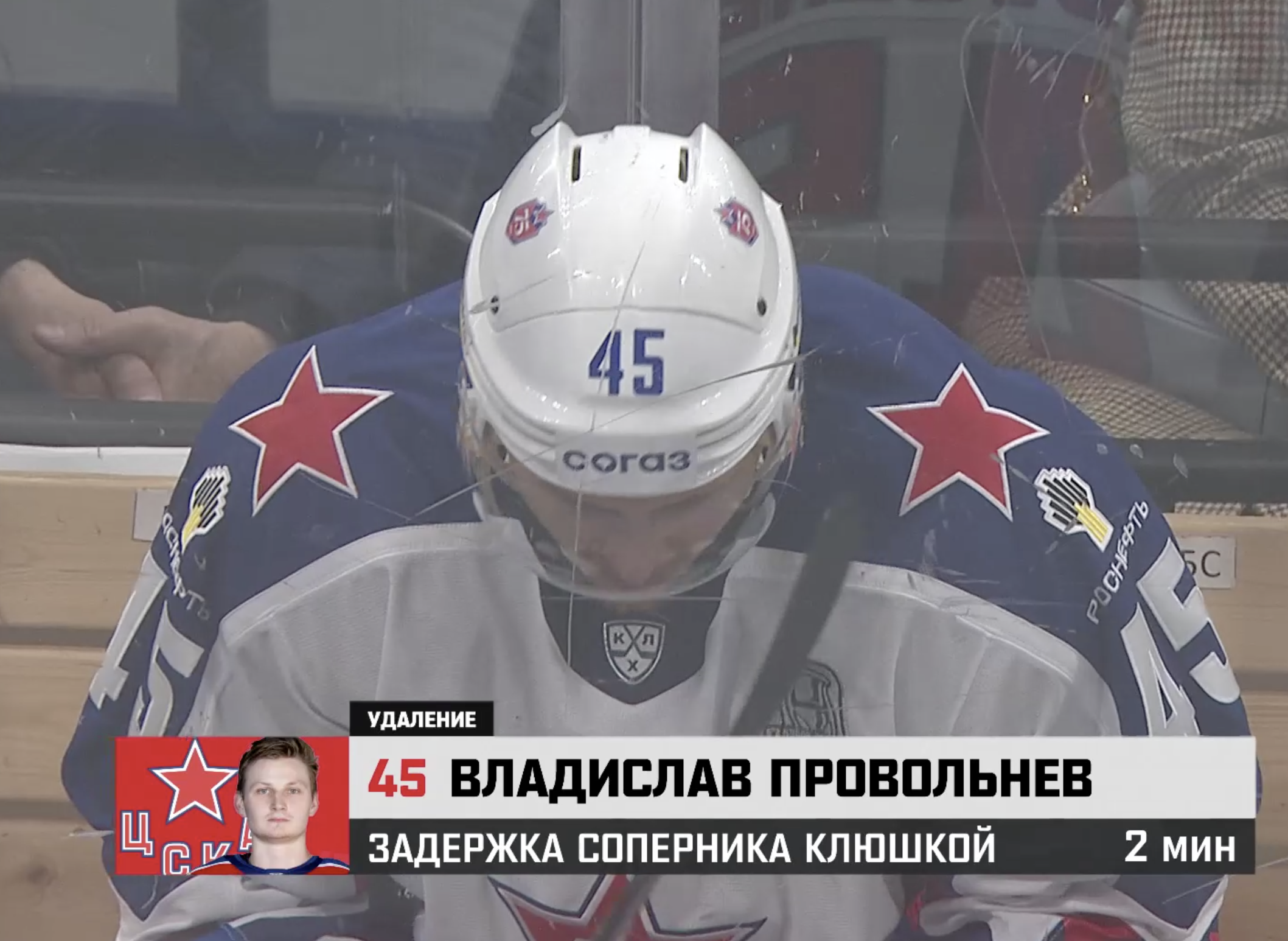 Михаил Фисенко зарабатывает двухминутное удаление в зоне атаки. Очередной заход на большинство у армейцев в этой серии.
