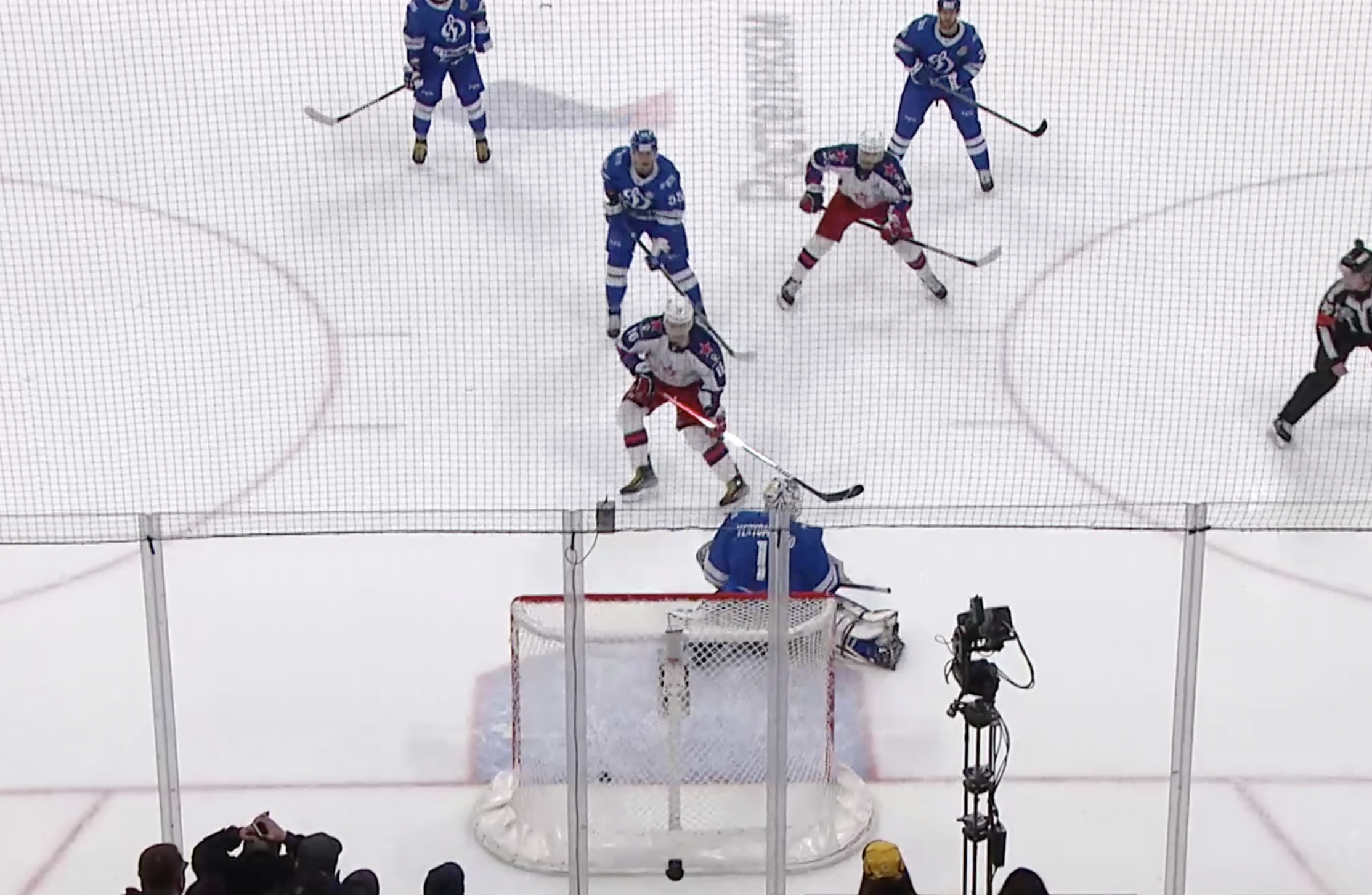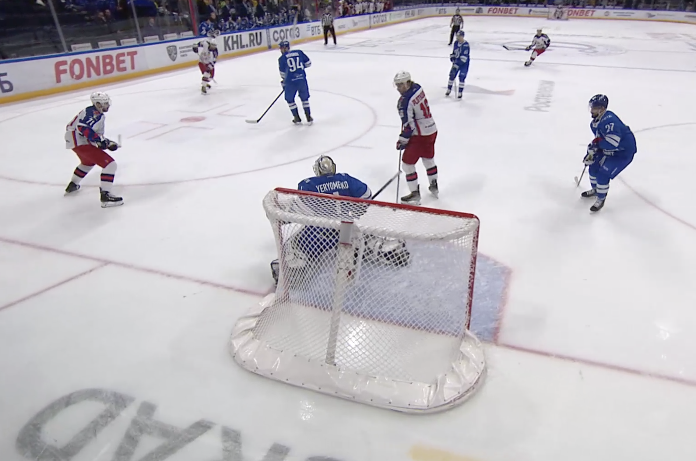 Зайцев получает четыре минуты штрафа за подножку за воротами. Ох, как же тяжело будет динамовцам сейчас.