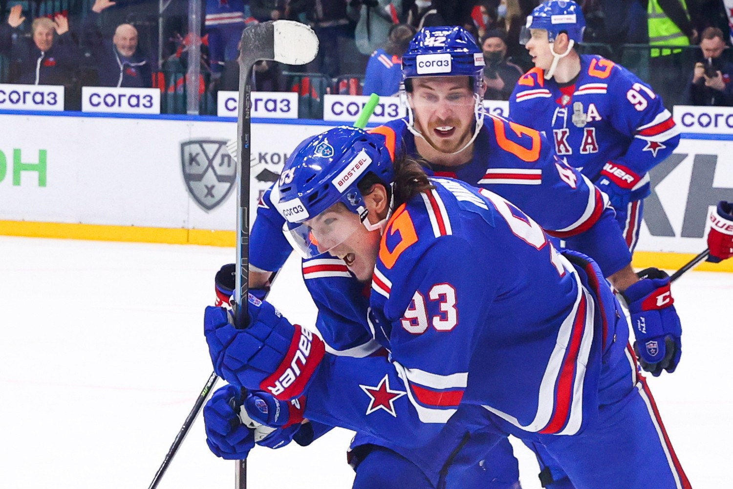 Ларс Юханссон защищает ворота СКА. В составе ЦСКА с первых минут играет Иван Федотов.