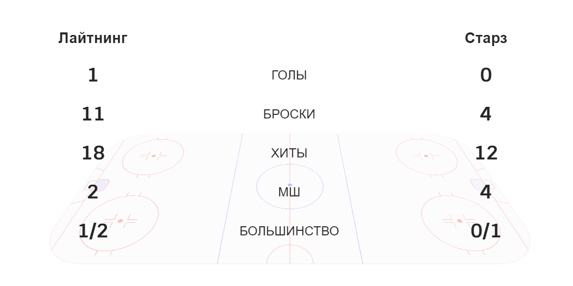И звучит сирена, сигнализирующая об окончании первого периода. 1:0 — гол Пойнта в большинстве вывел «Лайтнинг» вперед.