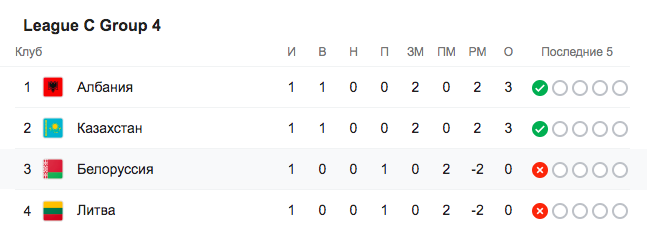 В данный момент Казахстан занимает второе место в группе 4 Лиги С, уступая Албании лишь по дополнительным показателям. Белоруссия же пока не набрала очков.