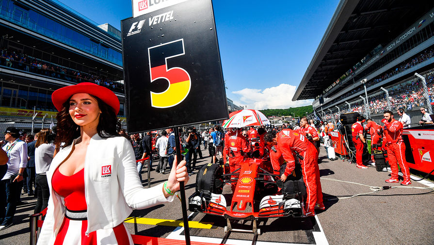 Девушки традиционно перед началом гонки представляют табличку с номером пилота.
