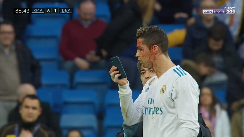 Ранее сообщалось, что Роналду разбили в кровь лицо в матче чемпионата Испании.