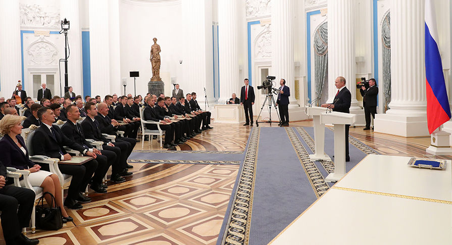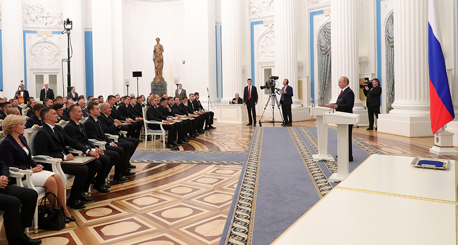 На ЧМ-2018 футболисты сборной России дошли до четвертьфинала турнира. За это спортсмены были представлены к государственным наградам и к званию заслуженных мастеров спорта.