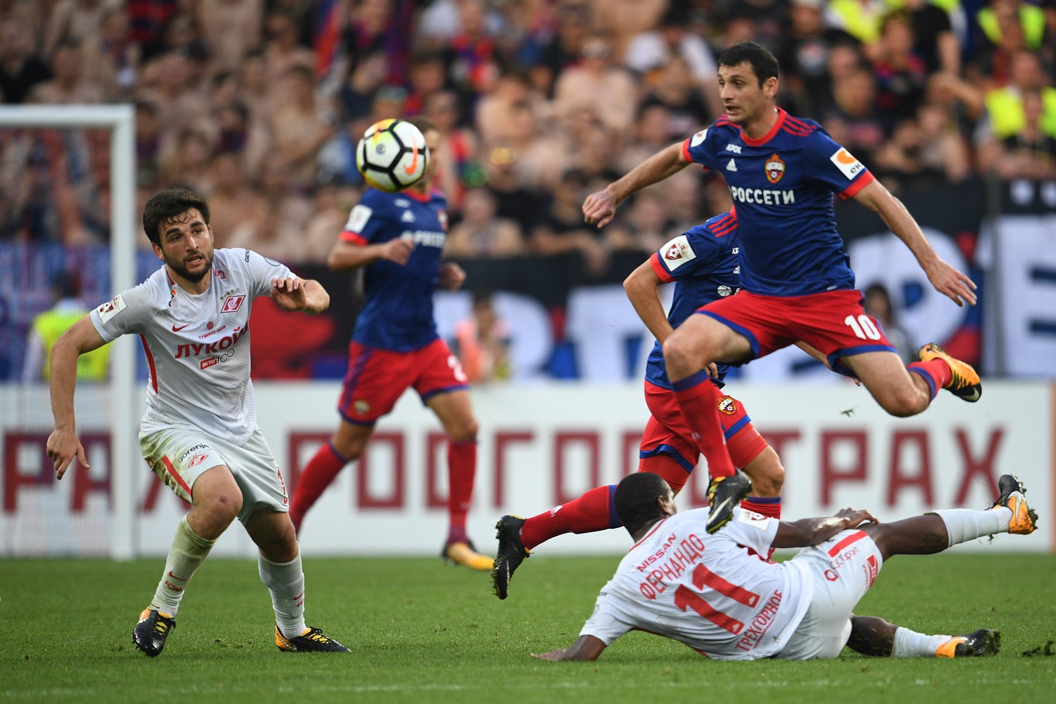 «За скандирование зрителями оскорбительных выражений ЦСКА оштрафован на 50 тысяч, за использование пиротехники — на 125 тысяч рублей. По «Спартаку» — за скандирование ненормативной лексики — 50 тысяч, за пиротехнику — 125 тысяч. Два человека сидели на ограждении. За неправомерное действие зрителей, создающих угрозу жизни и здоровья — 50 тысяч рублей. За несогласованные баннеры — 100 тысяч рублей. Еще один из баннеров содержал ненормативную лексику, за это штраф 50 тысяч рублей», — сообщил Григорьянц.