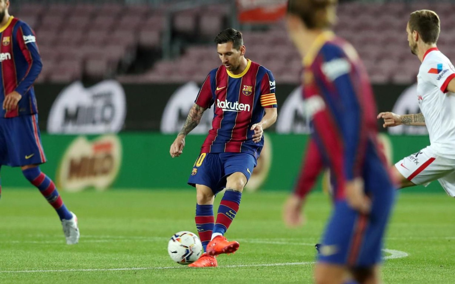 Забив мяч, форвард сине-гранатовых Лионель Месси надел футболку аргентинского клуба «Ньюэллс Олд Бойз» с десятым номером. Так Месси почтил память экс-игрока сборной Аргентины Диего Марадоны, который умер 25 ноября.