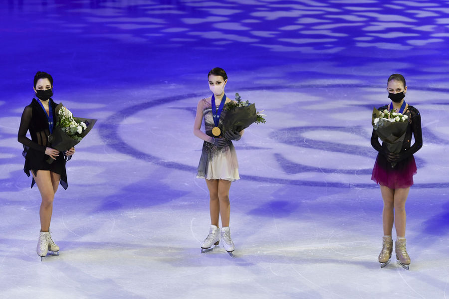 Чемпионкой мира стала россиянка Анна Щербакова, набравшая по сумме двух программ 233,17 балла. Второе место заняла ее соотечественница Елизавета Туктамышева (220,46). Третьей стала еще одна представительница России Александра Трусова (217,20).