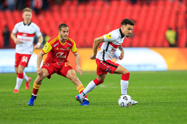 В конце первого тайма ведут подопечные Доменико Тедеско со счетом 1:0. Единственный мяч забил Александр Соболев.