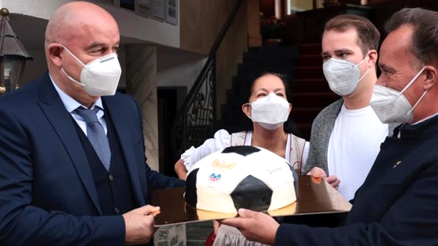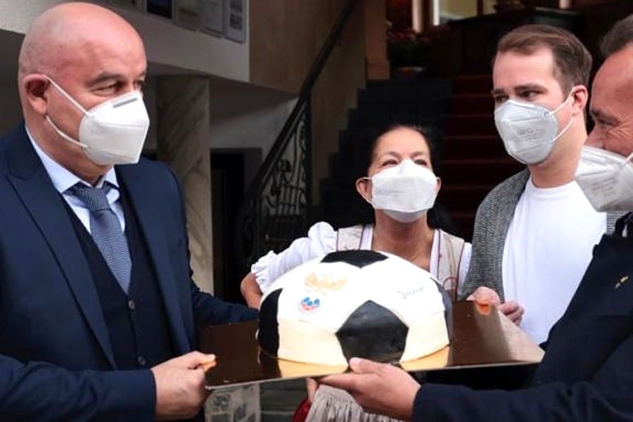 Российскую футбольную сборную встретили в Австрии тортом в виде мяча