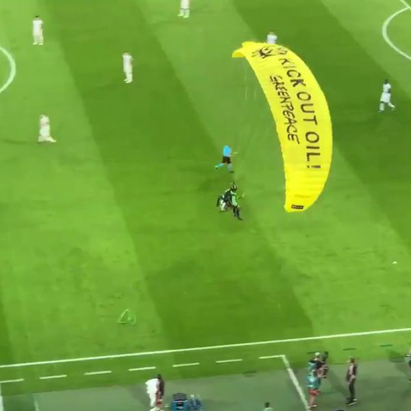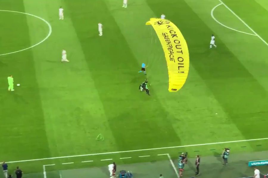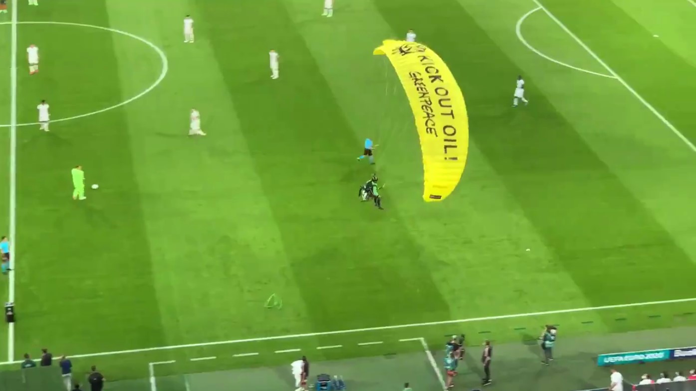 В свою очередь, организация «Гринпис» (организация признана в РФ нежелательной), активистом которой является парашютист, извинились за то, что протест прошел не по плану. И добавила, что его целью было бросить на поле мяч с протестным посланием, сообщает Bild.