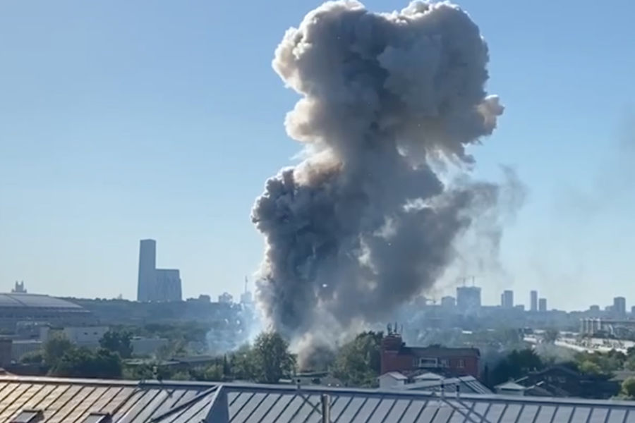В Москве на Лужнецкой набережной случился пожар, сопровождающийся взрывами.