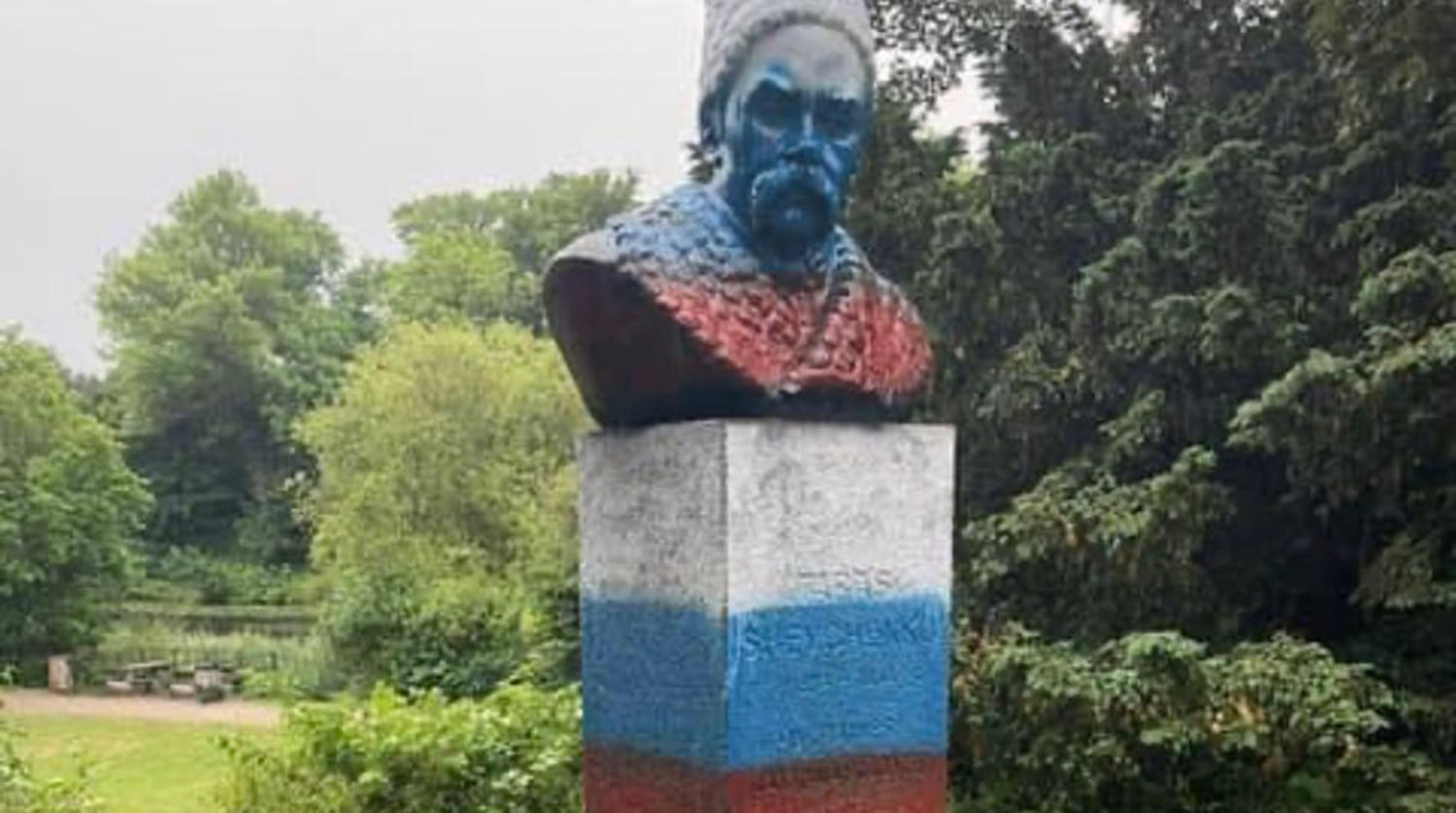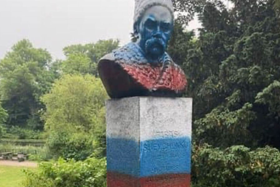 Вандалы раскрасили памятник Тарасу Шевченко в триколор на матче Россия — Дания