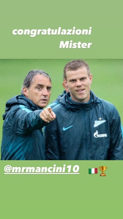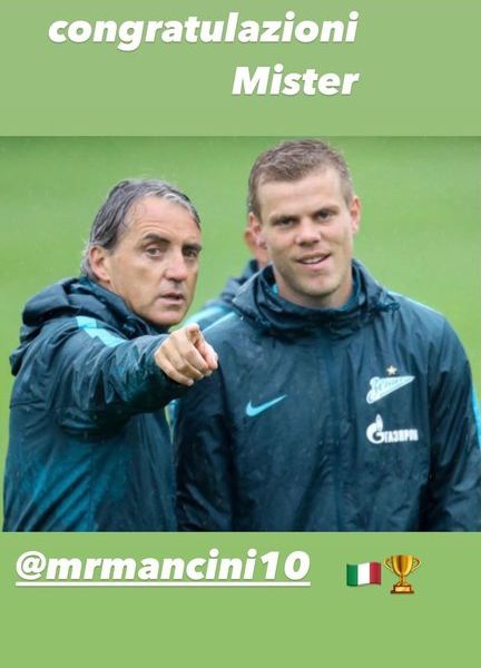 Нападающий «Фиорентины» Александр Кокорин поздравил главного тренера сборной Италии Роберто Манчини с победой на чемпионате Европы-2020. В решающем матче итальянцы в серии пенальти переиграли сборную Англии.