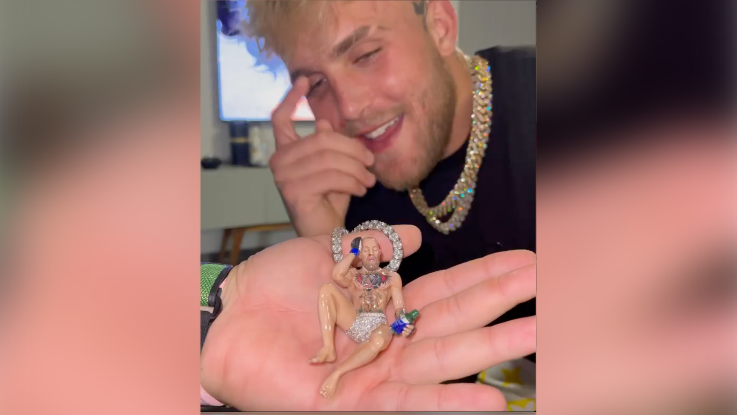 Блогер Джейк Пол вручил бойцу Абсолютного бойцовского чемпионата (UFC) Дастину Порье цепочку с кулоном в виде нокаутированного Конора Макгрегора.