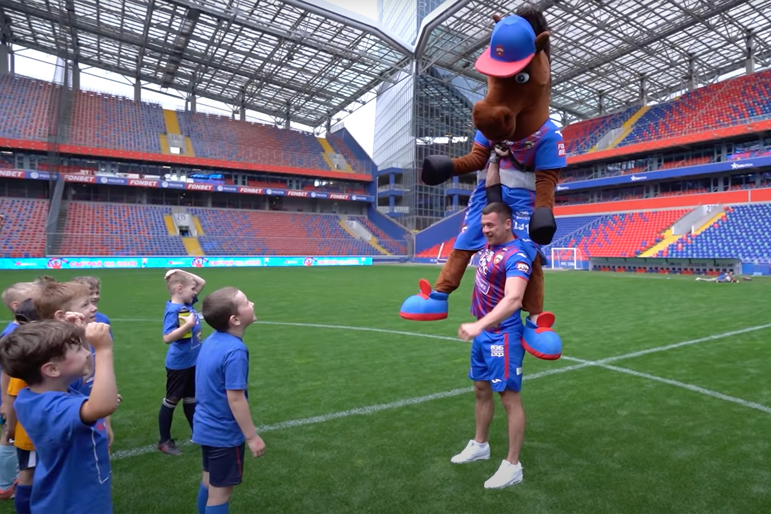 На арене армейского клуба он сначала предложил группе детей поднять в воздух маскота клуба – коня, а после этого сам сделал это правой рукой.