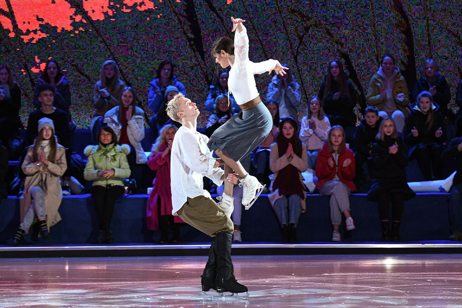Даня, например, достаточно жилистый, сильный, он Женю поднимает без проблем. То, что он упал в первой программе, было абсолютно технической ошибкой — он сам это знает, признает. В четвертой программе он абсолютно спокойно, безо всяких проблем и покачиваний сделал эту поддержку (видео того проката Медведевой и Милохина в образе пионеров набрало уже больше 1,5 млн просмотров. — «Газета»). И другие артисты тоже делают поддержки очень неплохо», — сказал Ставиский.