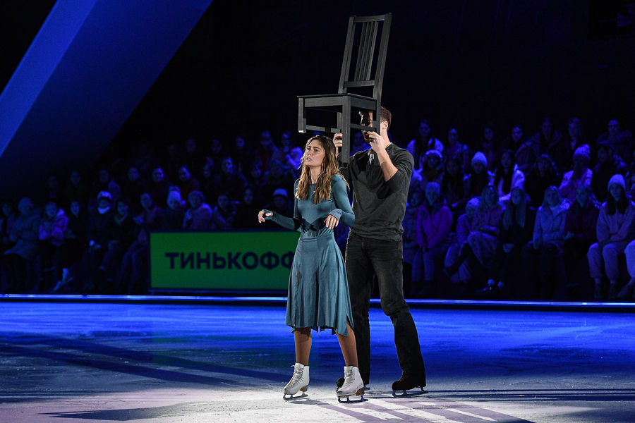Энберт и Муцениеце изображали в этом номере пару с проблемами в отношениях. В начале выступления актриса сидела на стуле и кричала, а затем фигурист схватил его и ударил об лед, из-за чего сломалась одна ножка.