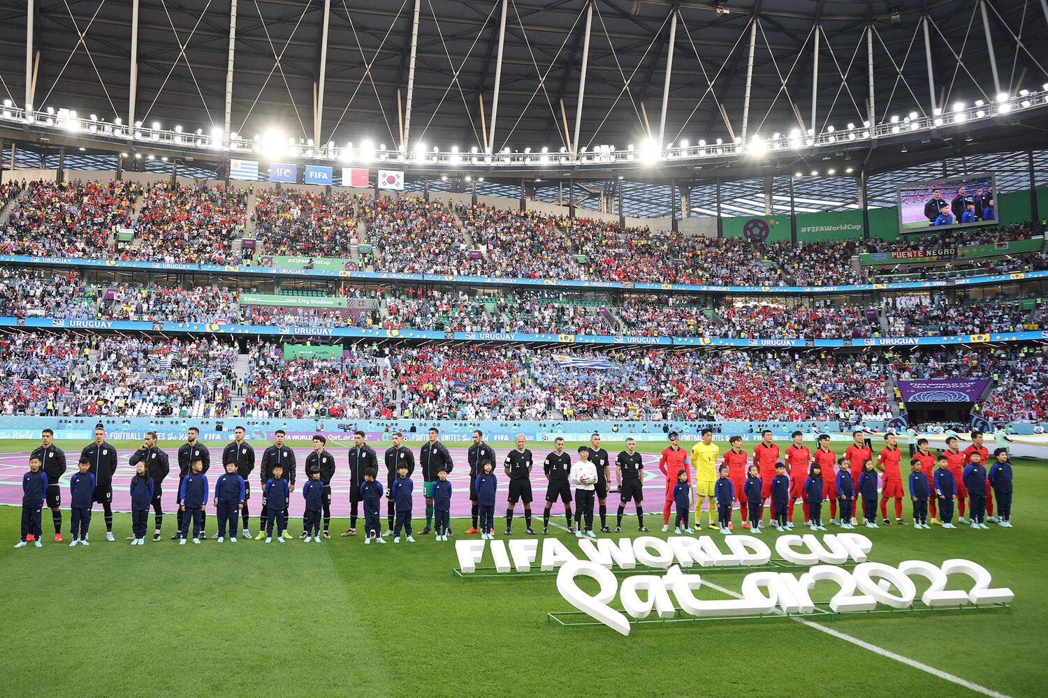 Катарский оркестр исполнил советскую песню «Катюша» в преддверии матча 1-го тура группового этапа чемпионата мира — 2022 между национальными командами Уругвая и Южной Кореи. Встреча проходит на стадионе «Эдьюкейшн Сити». После 20-й минуты счет не открыт — 0:0.