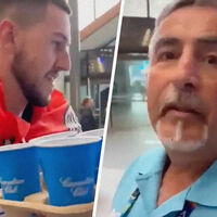 Затем охранник выразил недовольство тем, что его снимают на телефон. Сербские фанаты стали шутить над ним и пытаться научить его распознавать их флаг.