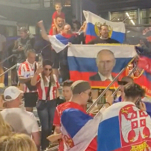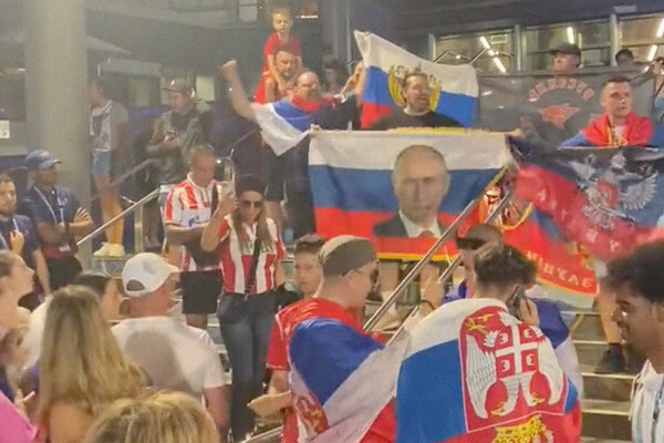 Несмотря на запрет со стороны Федерации тенниса Австралии, фанаты сербского теннисиста Новака Джоковича растянули флаг России с изображением президента РФ Владимира Путина после матча их кумира с Андреем Рублевым. После этого четверых болельщиков задержала полиция.
