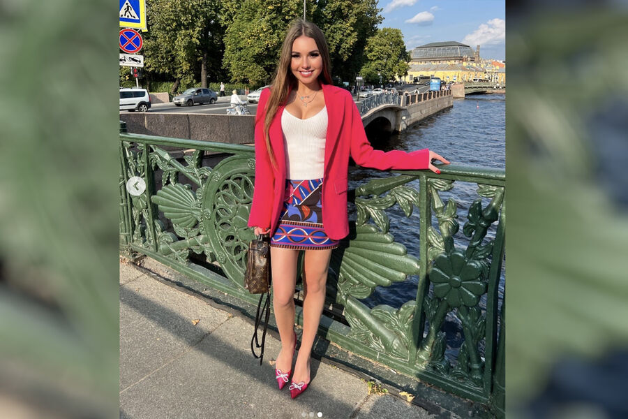 На снимке 21-летняя спортсменка позирует в яркой короткой юбке и пиджаке.