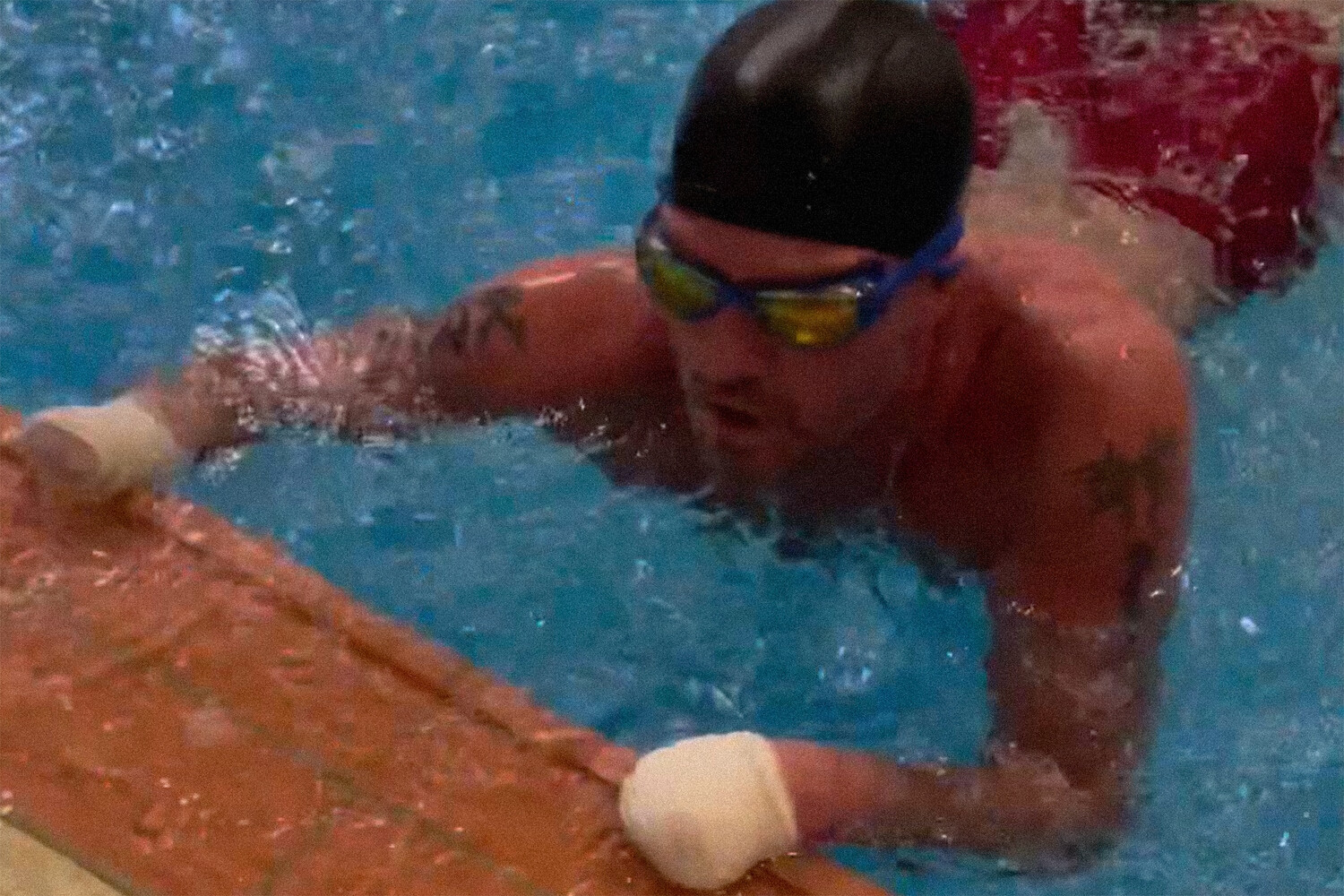 Спортсмен показал, как плавает в бассейне, используя для движения вперед только руки. На видео Костомаров наложил песню Григория Лепса «Я счастливый».