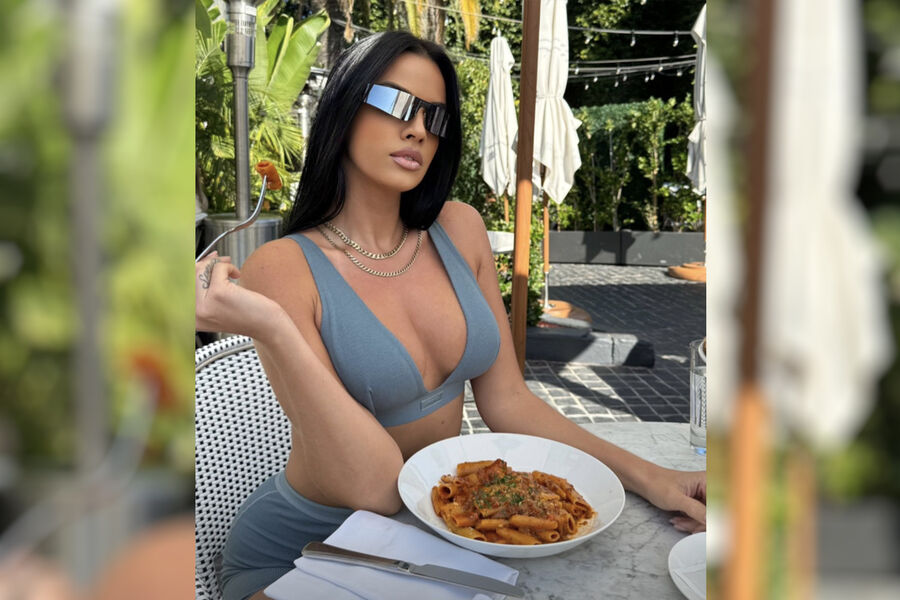Хорватская модель и футбольная болельщица Ивана Кнолль в своих социальных сетях выложила фотографию в открытом топе. Девушка в коротком спортивном топе и шортах сидит за столом.