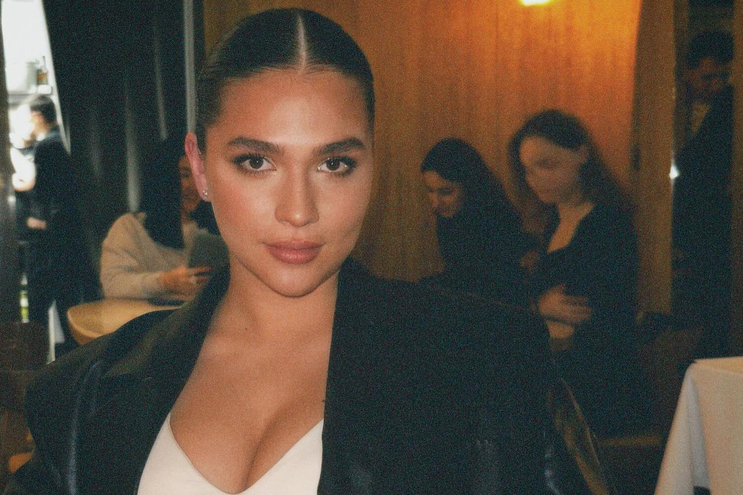 Российская фигуристка Станислава Константинова в своих социальных сетях поделилась фотографией из ресторана. Девушка позирует в черном кожаном пиджаке и молочном топе, который подчеркивает ее пышную грудь.