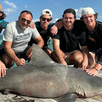 Россияне в компании с французским форвардом Александром Тексье и агентом россиян Шуми Бабаевым сделали совместное фото с трофейной акулой.