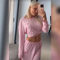 Валитова одета в тонкую розовую пижаму без бюстгалтера.