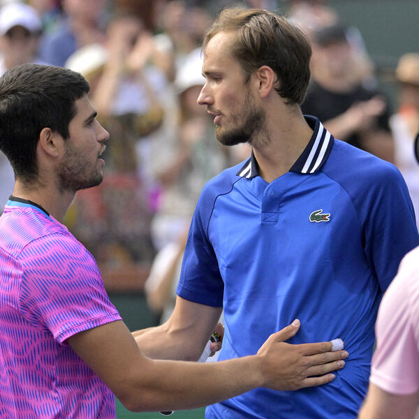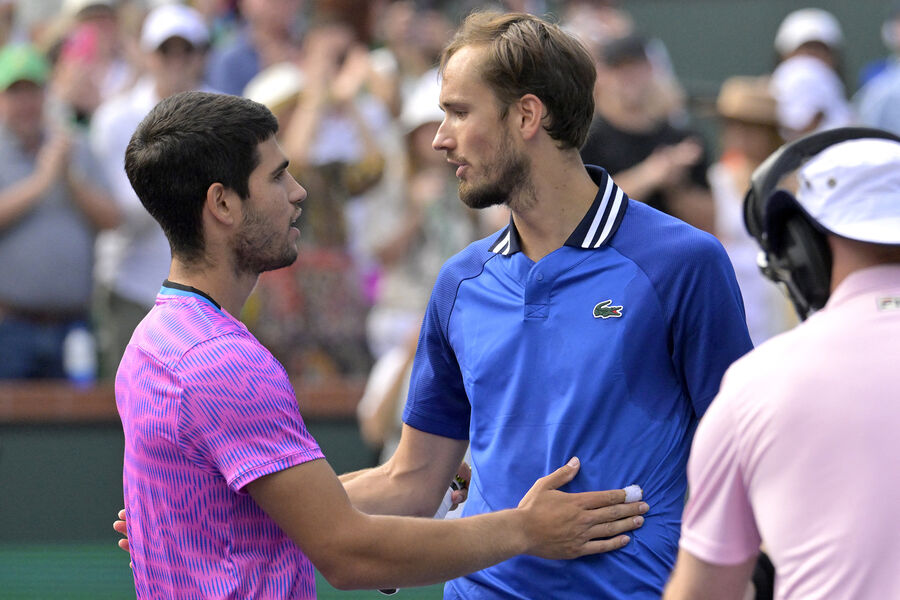 Встреча между Медведевым и Алькарасом в финале турнира в Индиан-Уэллсе текущего сезона продлилась 1 час 42 минуты и завершилась в двух сетах со счетом 7:6 (7:5), 6:1 в пользу испанца. Примечательно, что год назад в финале этого же турнира Медведев тоже уступил Алькарасу. Россиянин проиграл пятый финал турниров ATP подряд.