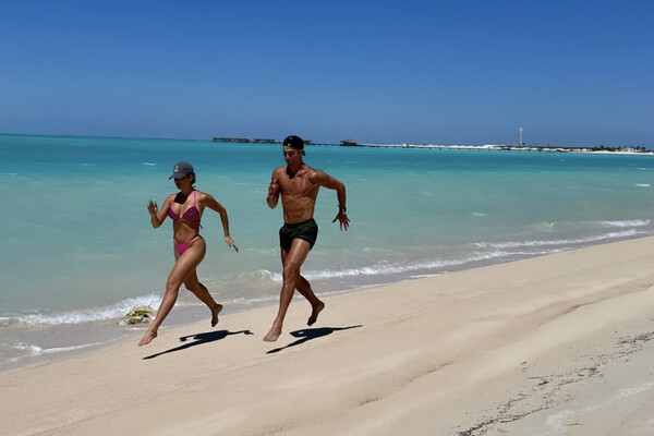 Невеста нападающего саудовского «Аль-Насра» Криштиану Роналду, модель Джорджина Родригес поделилась в Stories Instagram (владелец компания Meta признана в России экстремистской и запрещена) фотографией, как они с футболистом совершают пробежку по пляжу.