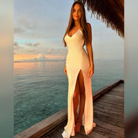 На кадрах спортсменка позирует в облегающем белом платье с глубоким разрезом на бедре.