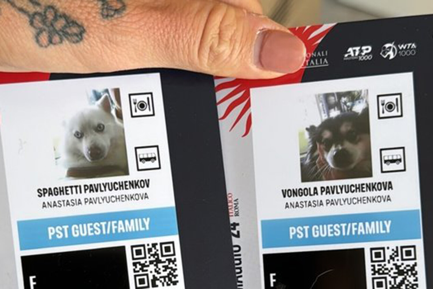 На аккредитациях указаны клички собак — Спагетти и Вонгола Павлюченковы, заявленных в качестве гостей/семьи российской теннисистки. Собакам можно заходить не только на территорию проведения соревнований, но и даже на центральный корт.