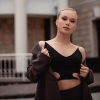 На снимке спортсменка позирует в топе с открытыми плечами.