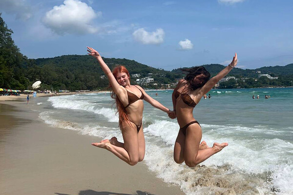 На снимках фигуристка отдыхает на пляже в Таиланде вместе со своей подругой Софьей Самоделкиной.