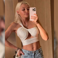 Валитова на видеозаписи позирует в джинсах и светлом топе необычного кроя.