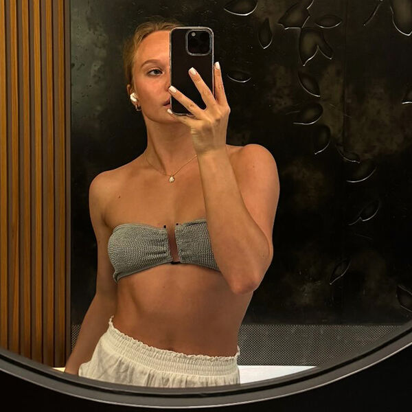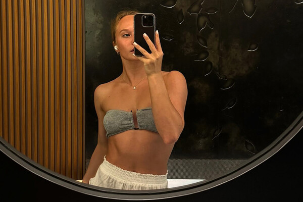 На фото Мельникова позирует через зеркало в топе, обнажающем торс и плечи спортсменки.