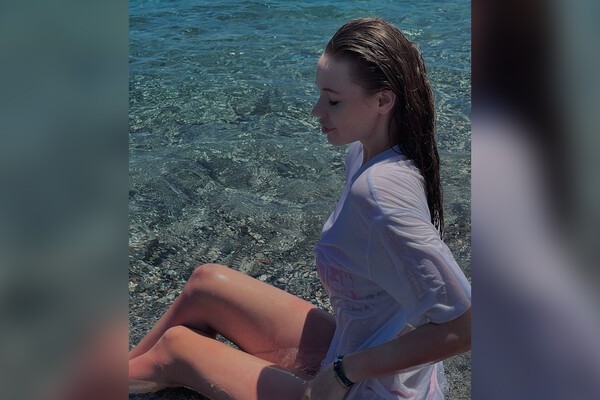 23-летняя спортсменка, которая проводила отпуск в Турции, выложила фотографию на берегу моря в мокрой футболке, через которую просвечивается красный бюстгальтер.
