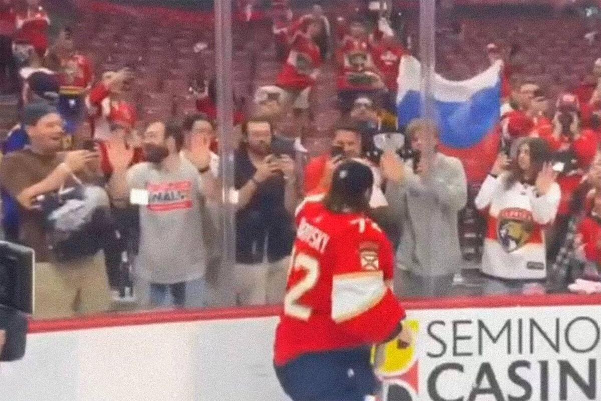 Болельщики американского клуба «Флорида Пантерз» развернули на трибунах флаг России после победы команды в финале Кубка Стэнли — 2024.