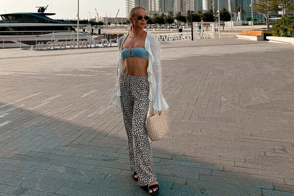 На кадрах спортсменка позирует в коротком топе, который прикрывает только грудь, обнажая живот и плечи.